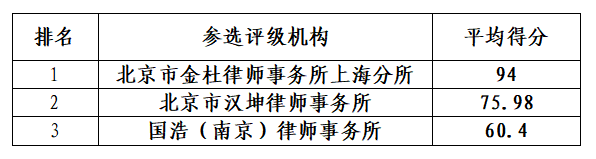 株洲国金资本控股有限公司旗下子公司湘信融资租赁有限公司以公开比选方式对公司第三期ABS合作律师事务所进行选聘,经评审小组评审,现将评审结果公告如下: