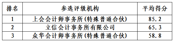 株洲国金资本控股有限公司旗下子公司湘信融资租赁有限公司以公开比选方式对公司第三期ABS合作会计师事务所进行选聘,经评审小组评审,现将评审结果公告如下: